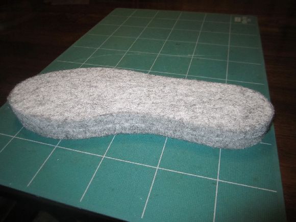 最初にへらでフェルトに均一に塗り10分ほど放置しておきます。これは慌てずに説明書の指示通りに行ってください。片足づつ行った方が良いかと思います。