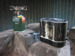 ご飯は手抜きでガスコンロで炊きました。