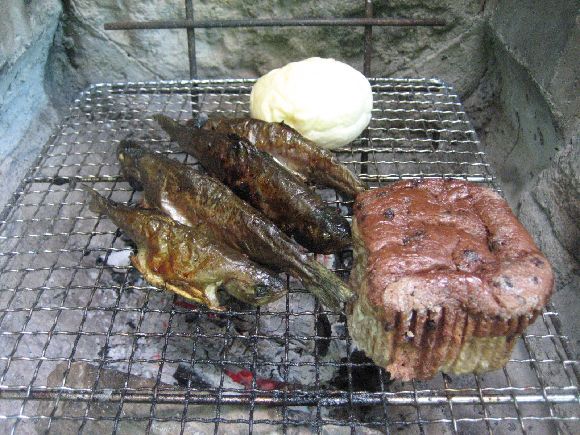 炭火で菓子パンをも焼くのこ美味しいです。