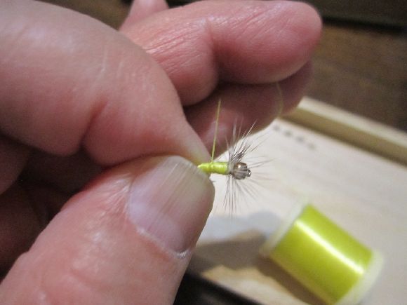 明日の仕事になぜか寝たくない心境で毛鉤を巻き始めました。