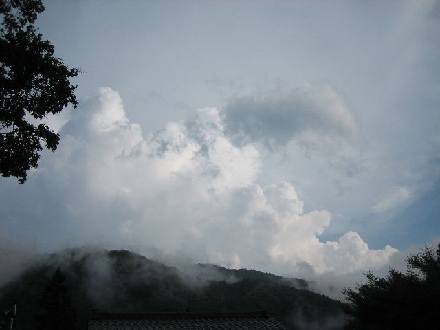 夕立にあっても良い具合に楽しめるように大きなブルーシートを張り万全の体制で楽しみます。