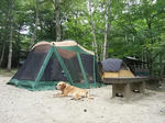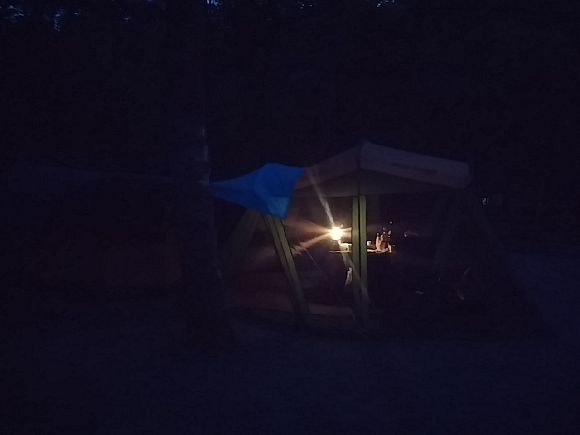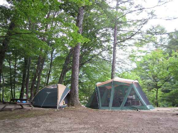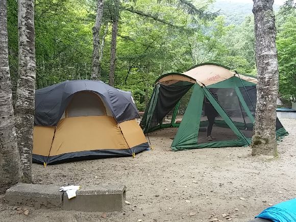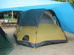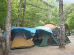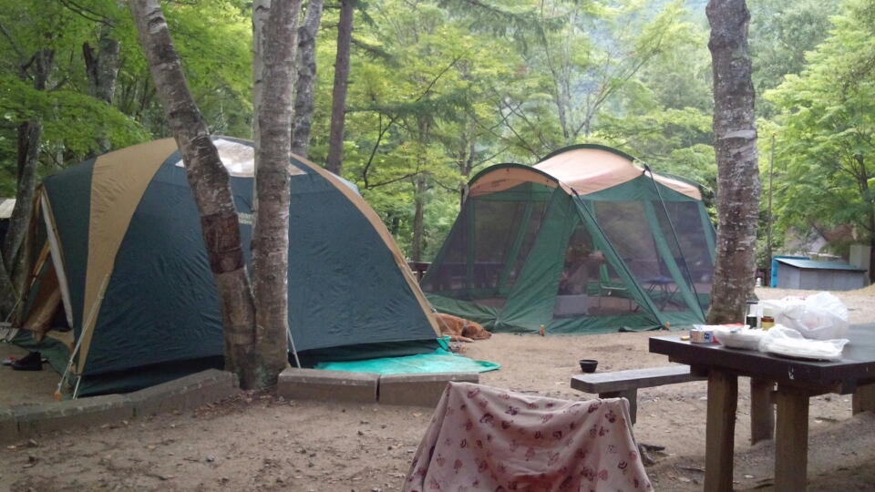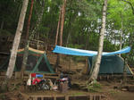 設営完了、夕立ち対応のタープ、最強プルーシートも完成。