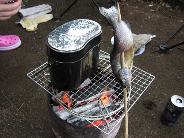 飯盒でご飯&釣った魚は炭火でゆっくりと焼きます。