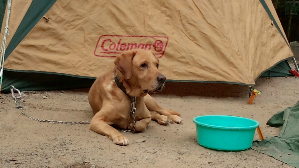 テントにはレオ蔵の出入り口もあります。夜間のおトイレや水飲みにです。