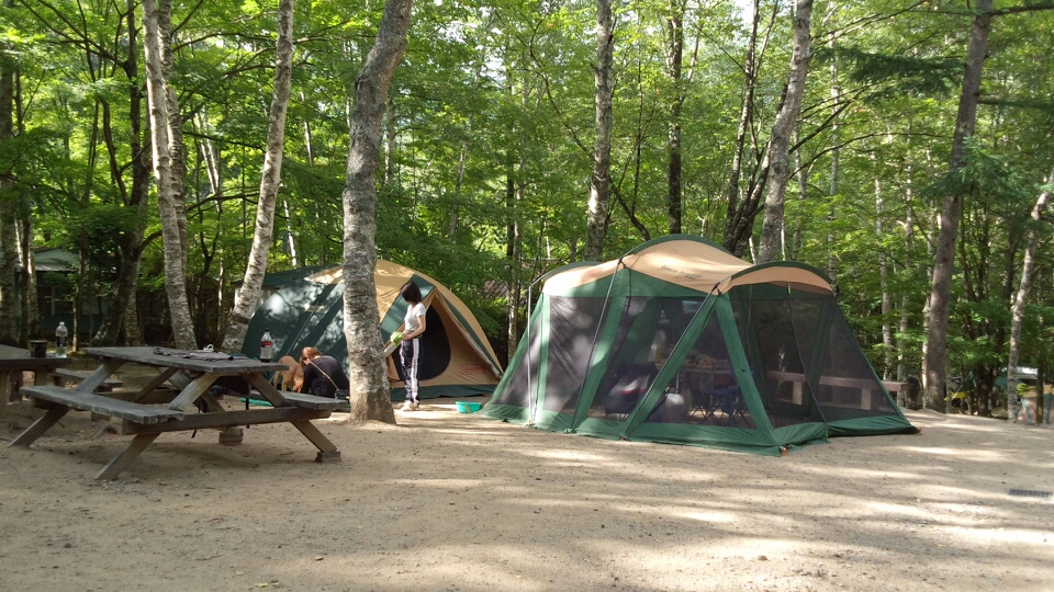 日中に温泉で癒して果物を沢山仕入れてテントに帰宅