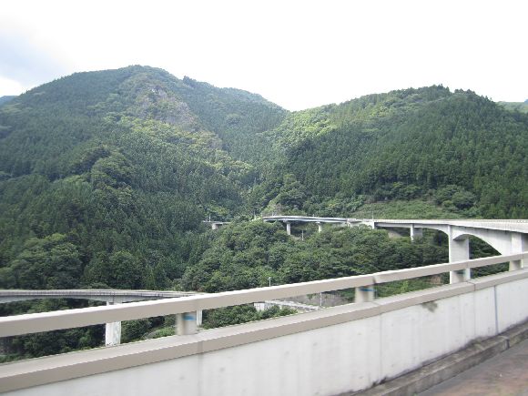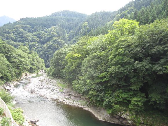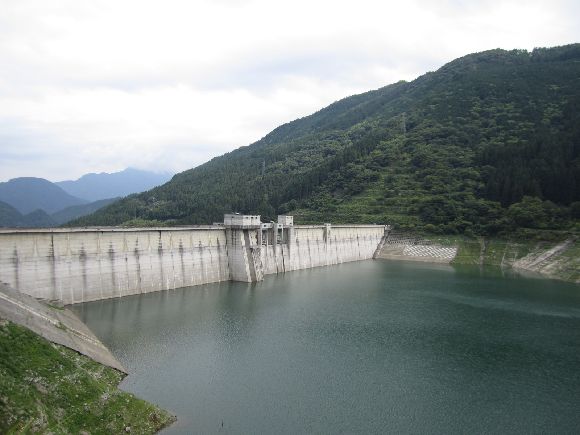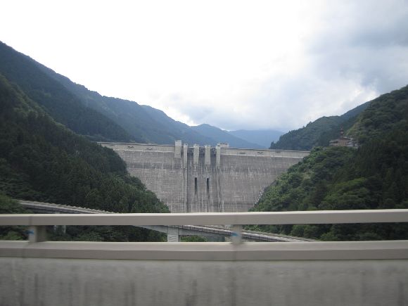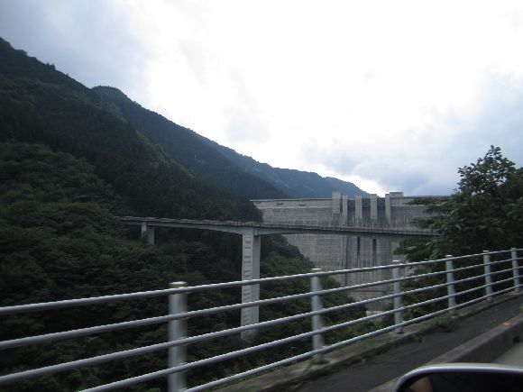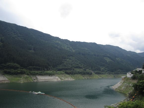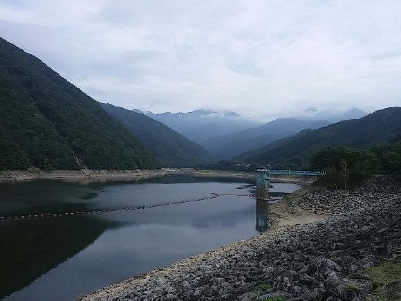 広瀬ダムも渇水状態、見る景色はやや曇りも心地よい