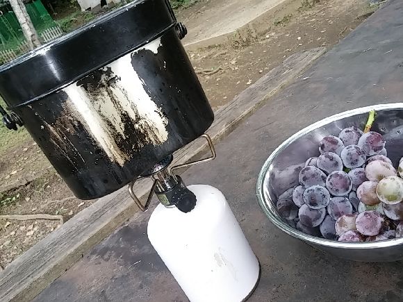 本日はアルコールとフルーツで最後にもしもお腹がすいたらご飯なので手間いらずに炊きます。