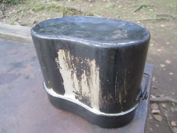 コゲがつかない際で炊き上げるにはいろいろと説が有りますが自分は音を聞きながら加減して仕上げます。基本ははじめちょろちょろ中ぱっぱが強すぎないように(ガスは一か所に火力が集中するので上手にずらします)水っ気が飛んだかどうかは今回はハンマーの柄を当ててぐつぐつ音を感じ分けます。静かになってから火力を下げて7~8分程度で飯盒の脇を叩くとこつこつ(3000円♪)となりひっくり返して10分弱で美味しく炊けます。多使用の水加減などは聴き分けて時間で調整かのうなので聞き分けのコツを知ったら簡単に炊けます。