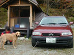 キャンプなので愛車の渓流仕様の軽乗用車です。マル秘ポイント?にはベストサイズ?・・・