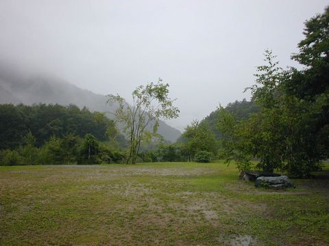 しかしながら生憎の雨です。当初は釣り初心者の友人に三依渓流釣り場で釣り体験を予定していましたが夜明けと同時に降りだした雨に予定変更ののんびりキャンプ??
