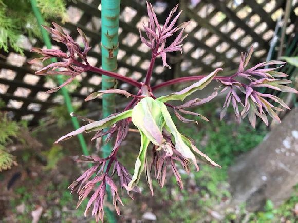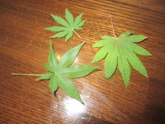 我が家にはもみじが三種植えてありそれぞれ違った葉っぱの形です。如何にももみじで好きな葉の形です。