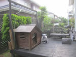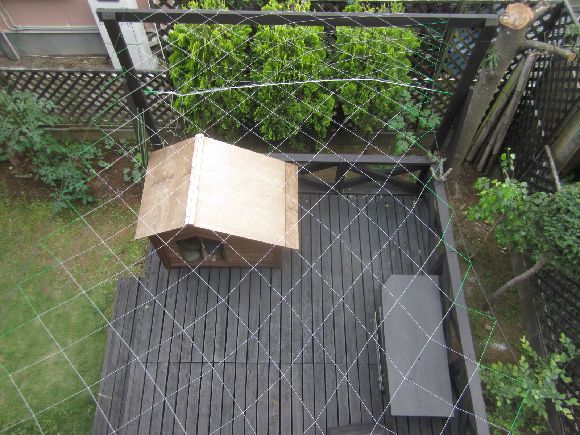 ウッドデッキの上部にはゴーヤとへちまのネットを張りました。