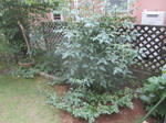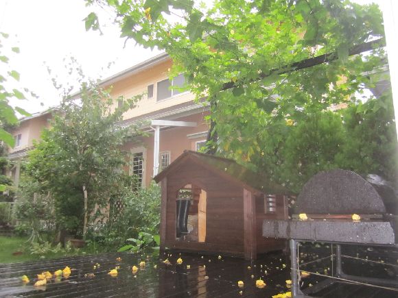 一気に高さを増して膨らみ近所さんに枝を伸ばしています。特に写真を忘れた背中側のデッキ周りと玄関側でこんもりと(笑)