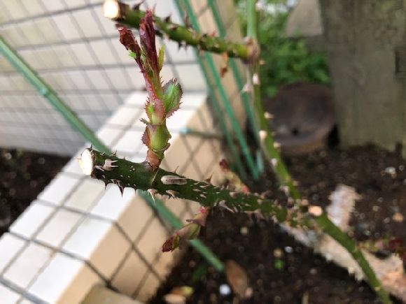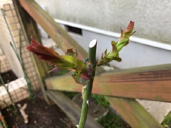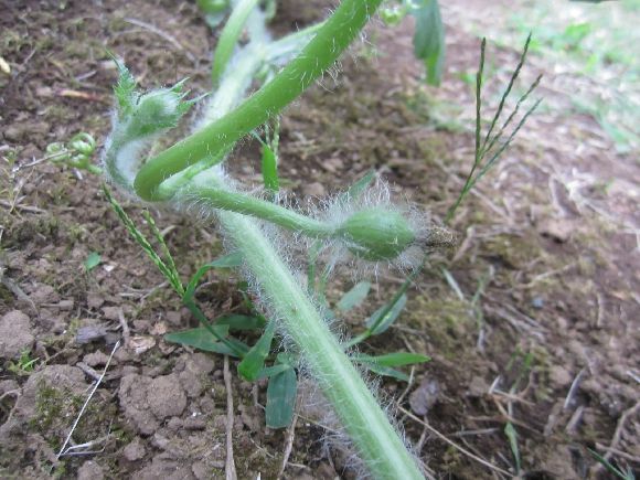 先端を切って横へ伸びるようにしました。我が家はどちらも食用に期待しています。