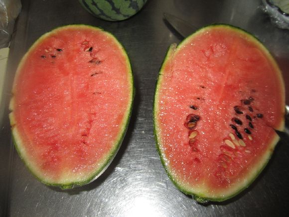 マンボウさんの受粉を真似てスイカのついに実が育っています。