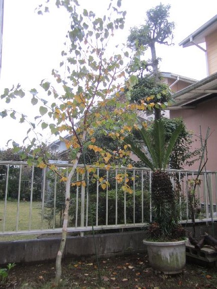 白樺の葉は落ちてきています。