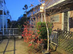 黄色の幸運の花が咲きデッキの上でグリーンカーテンとなりへちまがぶら下がる予定です。