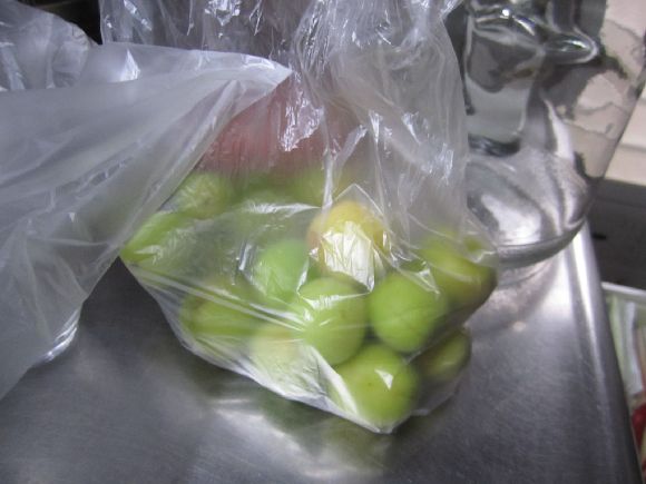 特別に駆除もせずに実りました。4、5年に一度このような出来の収穫があります。量は以前の豊作の3Kgは無く1.4Kgでした。見るからに良い梅酒が出来そうです。
