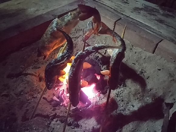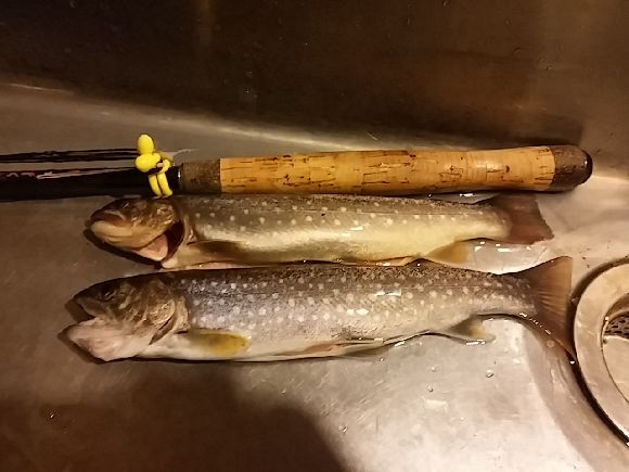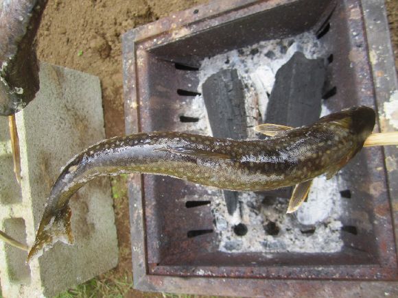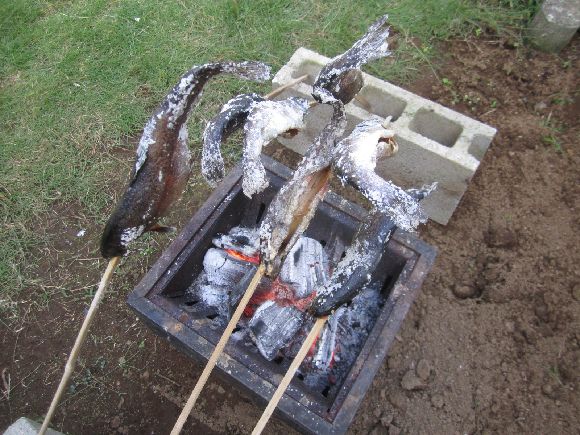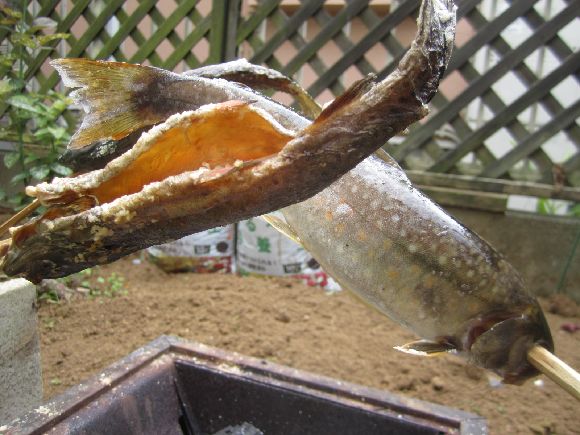 翌日は庭先で冷凍した鱒と釣果の岩魚を塩焼きにして近所にお届けと心と身体を癒して過ごしました。ついでに乾燥中の布袋竹のグリップを油抜き?しました。