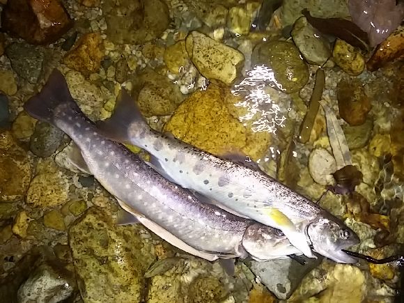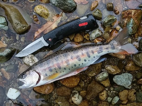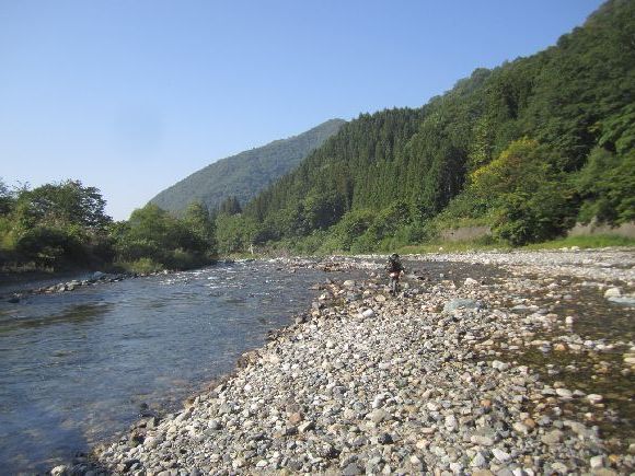 翌朝は本流を細かく攻めましたがこここそ反応はなく唯一大型の姿を一つ見たのみで終了。