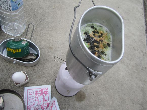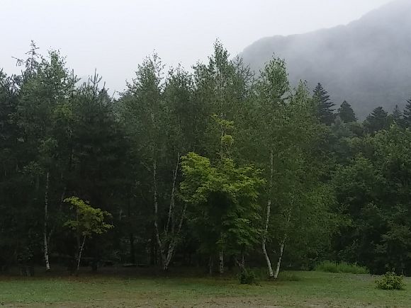 台風の通過を覚悟しての釣行なので朝飯とアルコールと森の景色を眺めての穏やかな時間で釣り談義。