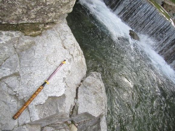 その後先輩が自分の下に毛鉤を打っていましたのでポイントへの振込練習に先ほど釣り上げたポイントへリズミカルに振り込むと違う角度から一気に流れ込みの下に引き込まれ流れから避けられずに堪えているとまた力余って岩魚が空を飛んで先輩はなんで飛んでるの???