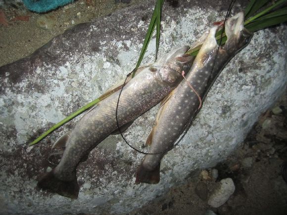 結局釣果は自分の2尾(25cm)だけで撤収して3人の笑い声が台風接近の雨の杜に響き渡っておりました。(笑)
