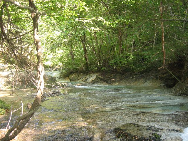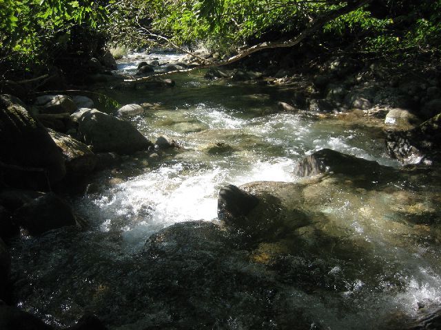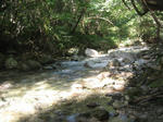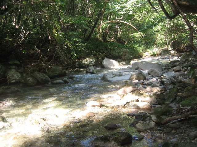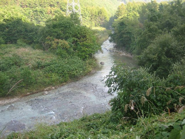 夏の終わりで9月前と言うこともあり水量が少なめの川の状態