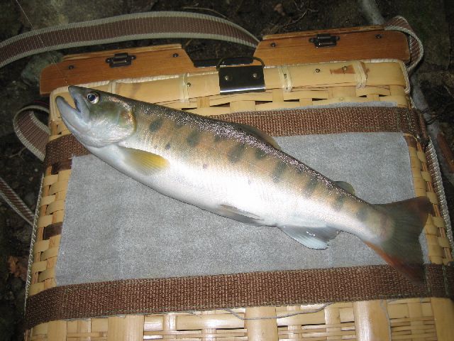 福島のラスト釣行に山神様は微笑んでくれました。感謝!感謝!見事な幅広ヒレピン山女魚です。