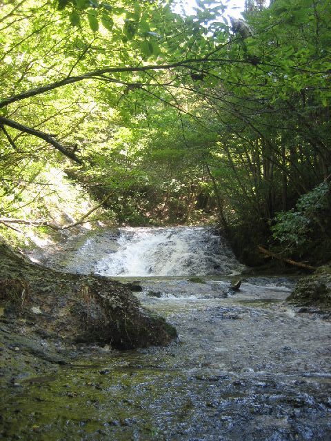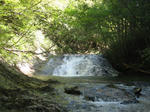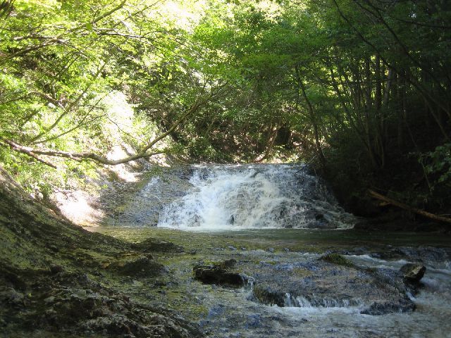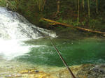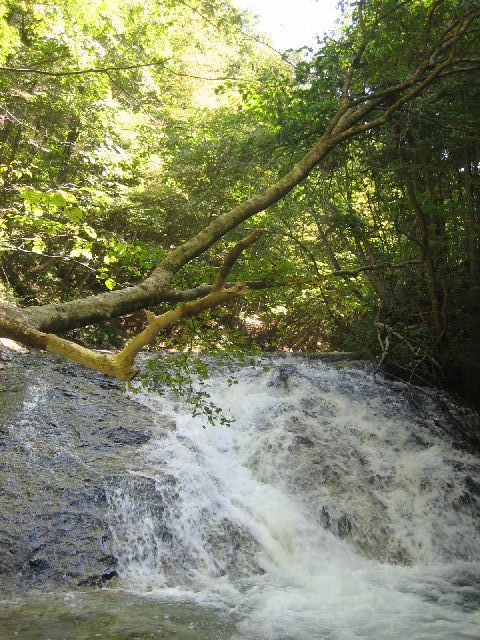 そして最後の滝壺、一人では高巻くことも出来ません。20分ほど頑張るもアタリ無しどん深か仕掛けも???と静御前・・・最後にと取っておいたメタボサイズのミミズを投入!