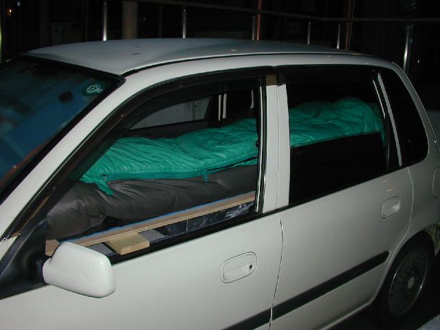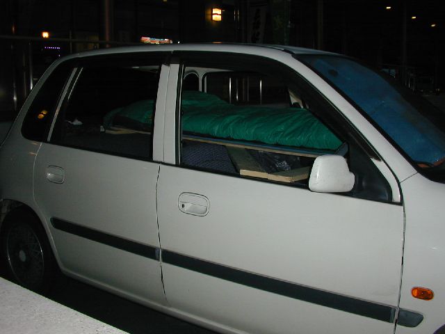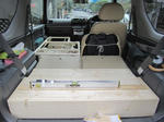 車両後部への納まりはBOXの後方下部の角を少し削ればぶれることなくしっかりと納まりました。次回はベッドの骨組みとベッドの板作りです。