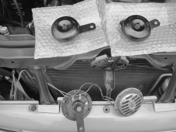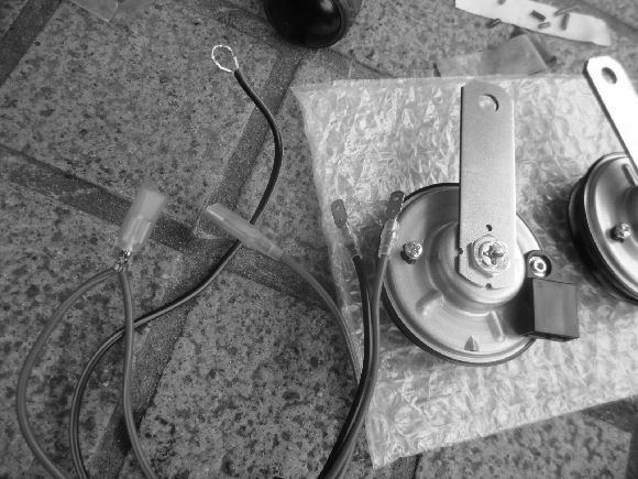 今回はどうもクラクションが気合が無い音色なので早速新車外しの大型SUVのクラクションを入手して交換です。