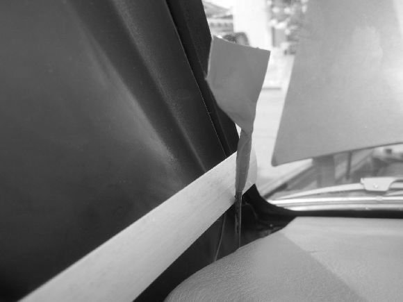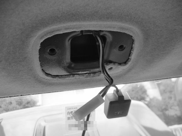 天井の内貼りの隙間にアンテナーコードを隠していきます。止めネジのある場所はゆるめて行えば入ります。
