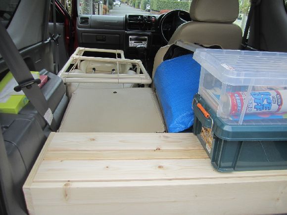 ジムニー用の車中泊ベッド作りをリコブテラさんのHPを参考に作りたくその前に荷室のフラットBOXを作りました。