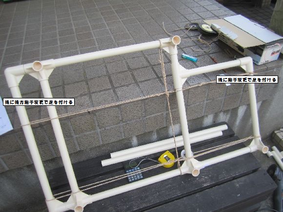 因みにイレクターパイプの糊を使わない部分は以前に紐で固定して使用したことがあるので大丈夫の判断をしました。改修の時の節約です。^^;