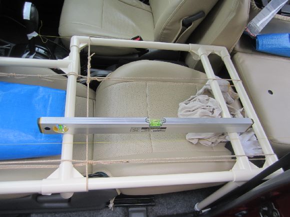 左右に二か所印をつけて水平器の厚み分下の左右のラインが後部の収納ボックスと水平ということです。この作業は道路が平らのところで行いますがほぼほぼで良いかと思います。^^;