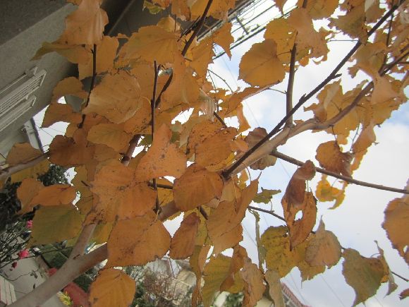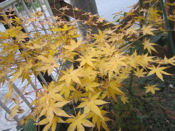 気分転換にここの所の冷え込みに散らずに紅葉する庭木です。白樺、もみじ、ブルーベリー