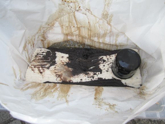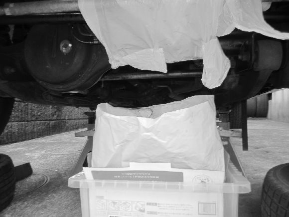 更にオイル交換はとてもずぼらな方法でジャッキUPはせずにタイヤに乗り上げてストッパーで固定して済ませてます。らくちんです。(笑)