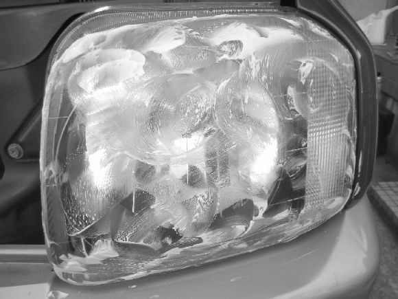 パーツの入荷を待っている間はヘッドライトを磨き上げておりました。