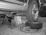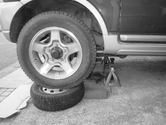 昔スタンドでバイトした経験で注意する部分をきちんとしてから手軽に作業する為スタンドなども差し込んで安全対策をしてのタイヤ乗せで交換をしています。