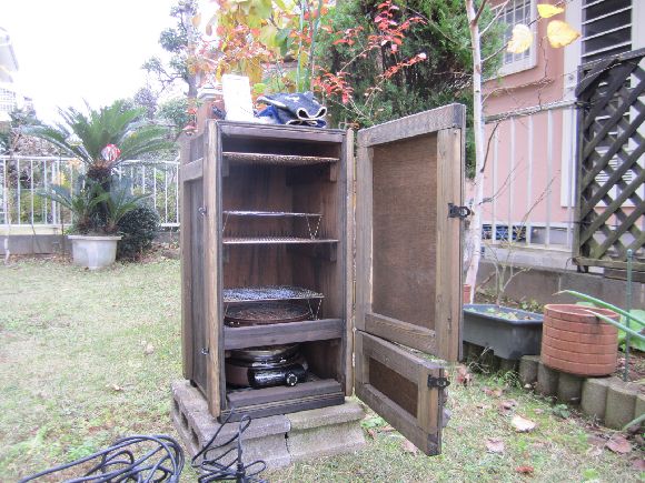 大がかりだと大変ですから最初は外でダンボールスモークとキャンプ用のコンロかチップ自体に点火するので作れば手軽に美味しく出来ますよ~おすすめです。