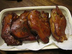 見事な燻製の数々、良い色に仕上がっていますね、温燻はやったことがありませんが、こんなにきれいに出来るものなんですね、どちらにしても手数のかかるもので、その気になるのが大変ですね。