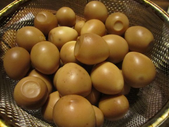 まずは卵ですがザルの中で重なり合って居ますがまんべんなく色が着くものなのですか?
