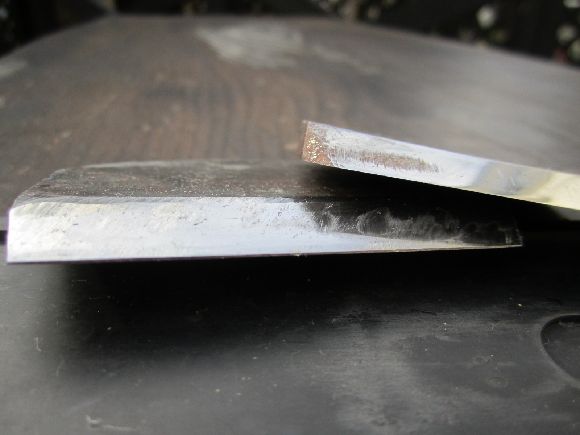 左の一枚はまだ刃が出来上がっていません。もう少し頑張れば研ぎ上がる予定です。