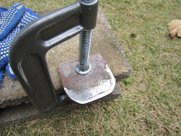 まずはこぼれた刃をサンダーで揃えます。削っては水につけての繰り返しです。