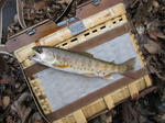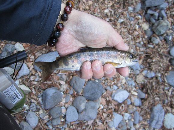 ちいさなアタリで緩やかに糸が横に移動したのを確認して更に時間を取ってからの合わせに出ました。冷たい山女魚です。