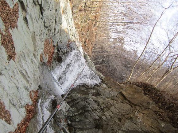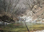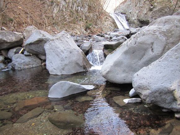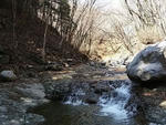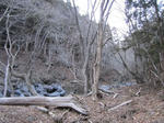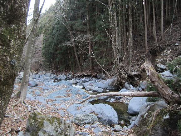 いつもは雪で寒くとても入れない沢なのですが今年は雪が消えての冬景色と色の少い景色です。