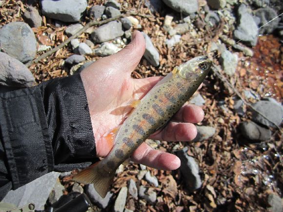 一番の目標は自前の毛鉤で良い渓魚に出会えることです。^^;