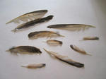 沢筋の大石の上に一度濡れて少し散らばっており亡骸はすでに他の動物に持ち去られたような雰囲気でした。これは嬉しいプレゼントです。長い方で7cm程度とテンカラ毛鉤に自分でも巻けそうです。何の鳥なのか分かりません。感謝して頂戴しました。