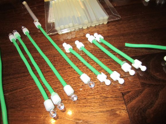 自分は薔薇などに使う園芸用被覆付き針金で代用し頭を付けて作りました。